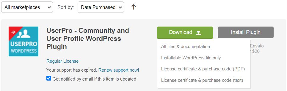 7. Copy&Paste Your purchase code to the UserPro “Licensing” page as well