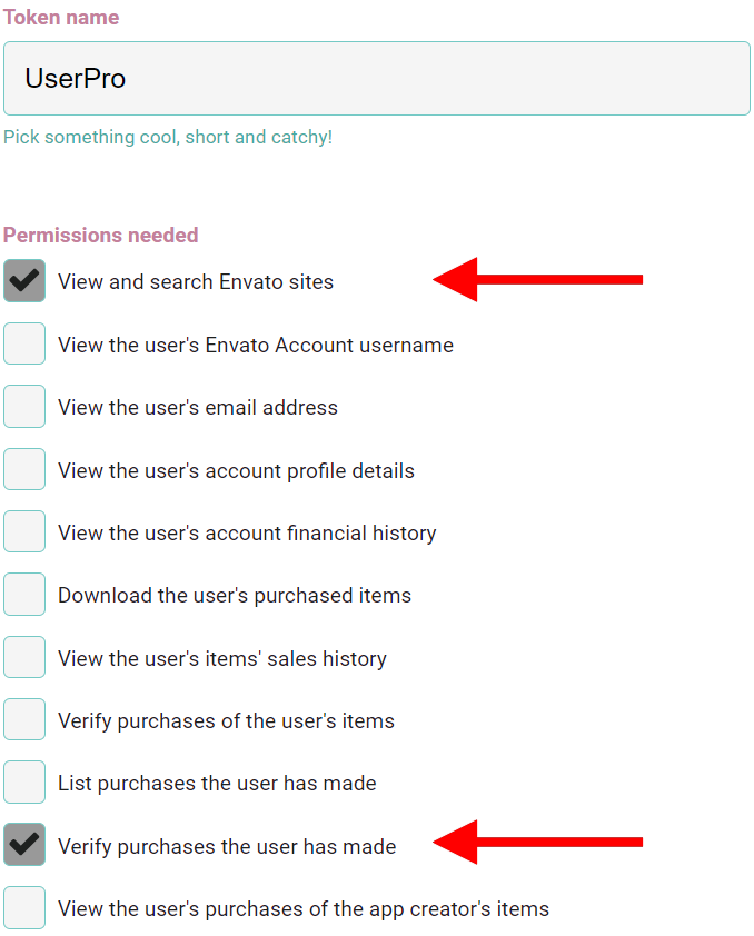 Note: Due to Envato token caching, it may take some time for token permissions to apply, or You will have to re-create Your token a couple of times, until API starts to read it properly.
