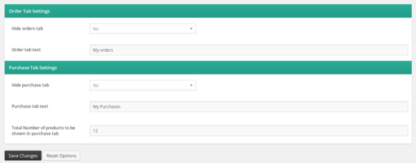 2. Here you can see Order Tab Settings and Purchase Tab Settings. By using these settings you can show or hide order/purchase tabs. Also you can change Order/Purchase tabs text.